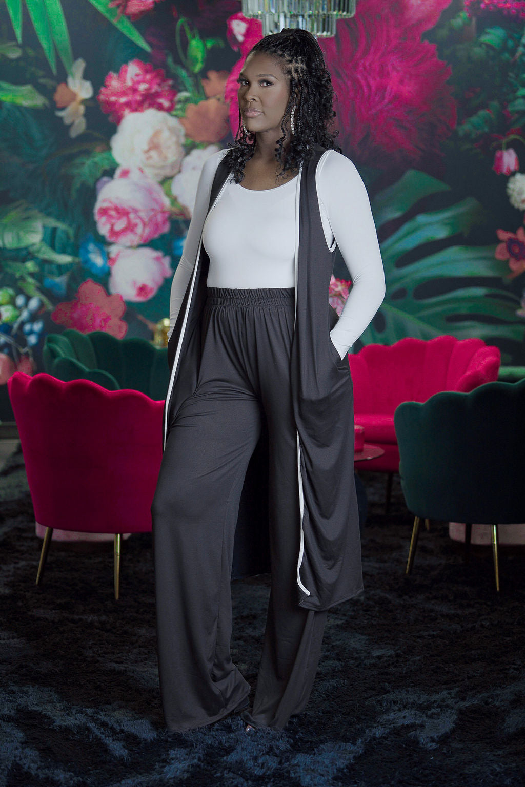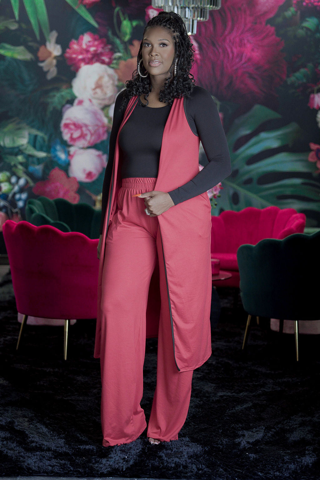 Designed specifically for tall frames, this two-piece vest set combines effortless style with practical comfort. The coordinating vest and 37-inch pants work together to create a polished, elongated silhouette that flatters taller proportions. Crafted from 100% rayon, the fabric drapes beautifully while maintaining breathability for all-day wear. The elastic waistband ensures a secure, comfortable fit without compromising movement. Whether layered for sophistication or worn as a statement ensemble, this set delivers versatile styling options for the modern tall woman.